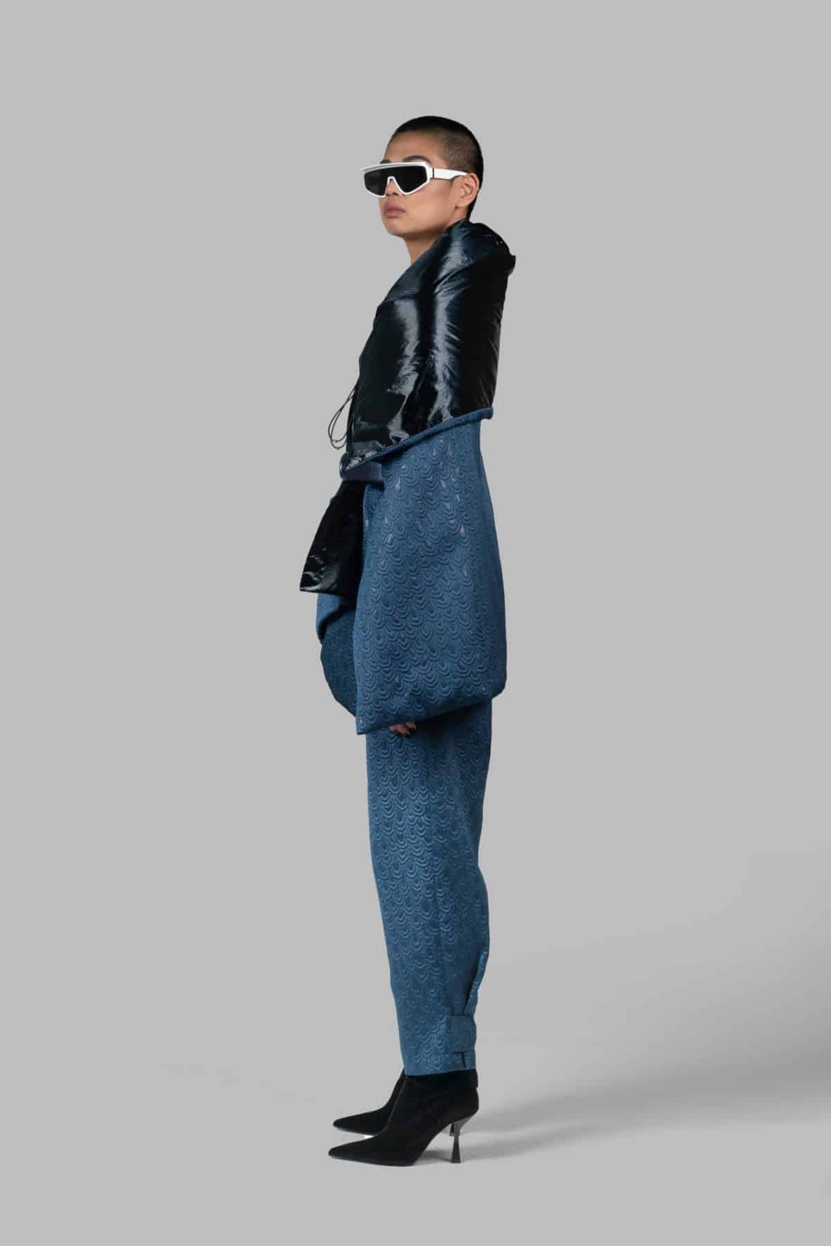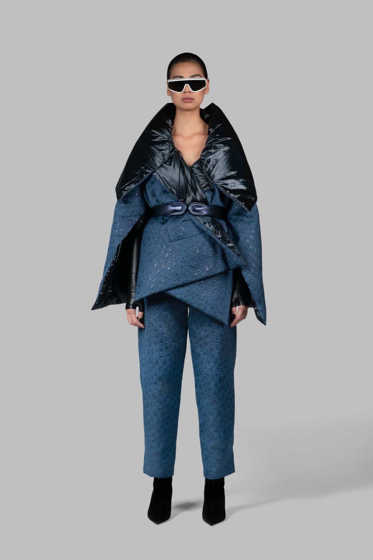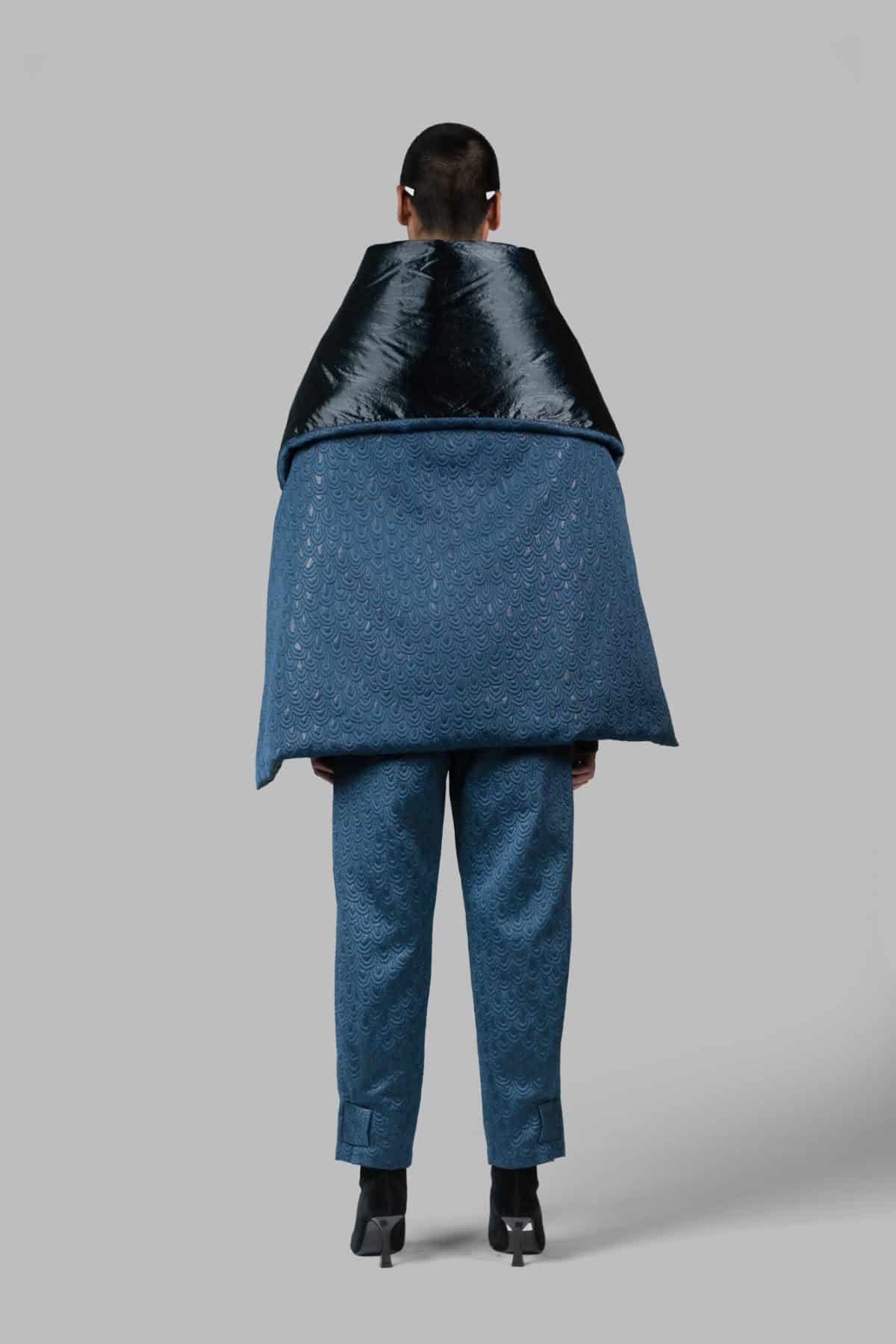 BLUE BROCADE AND LAME REVERSIBLE CAPE