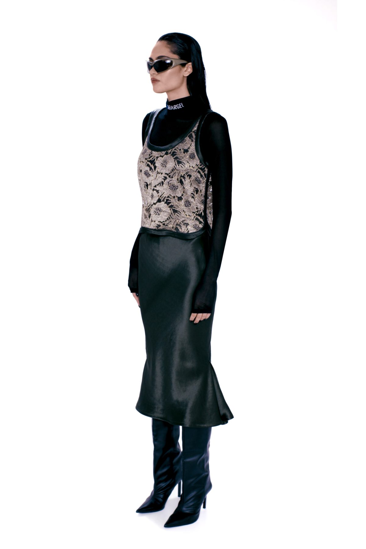 GOLD LACE PENCIL SKIRT