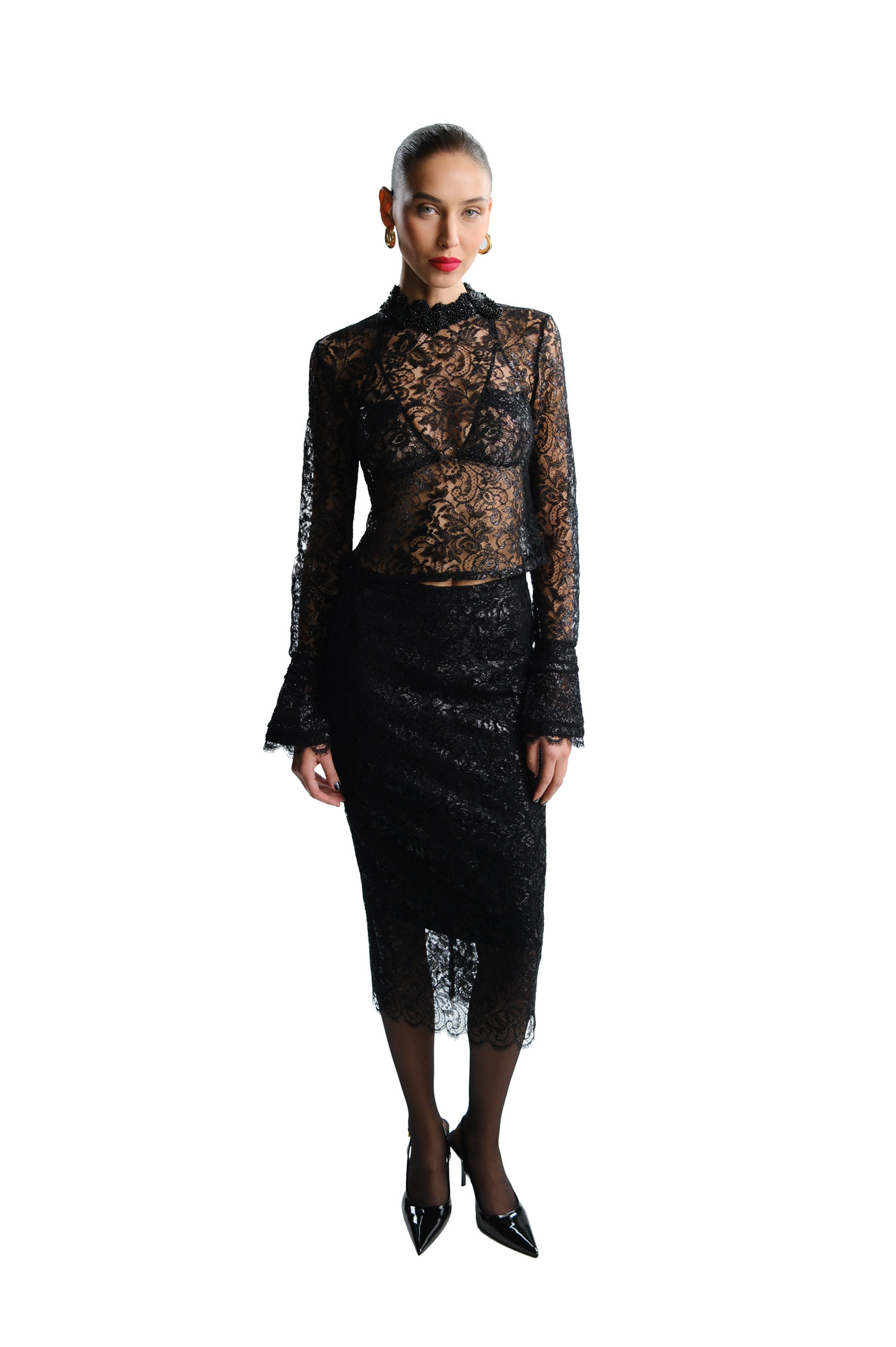 BLACK LACE LONG-SLEEVE TOP