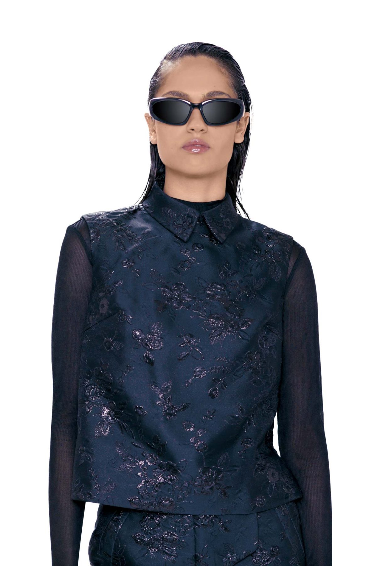 BLUE BROCADE AND LAME REVERSIBLE CAPE