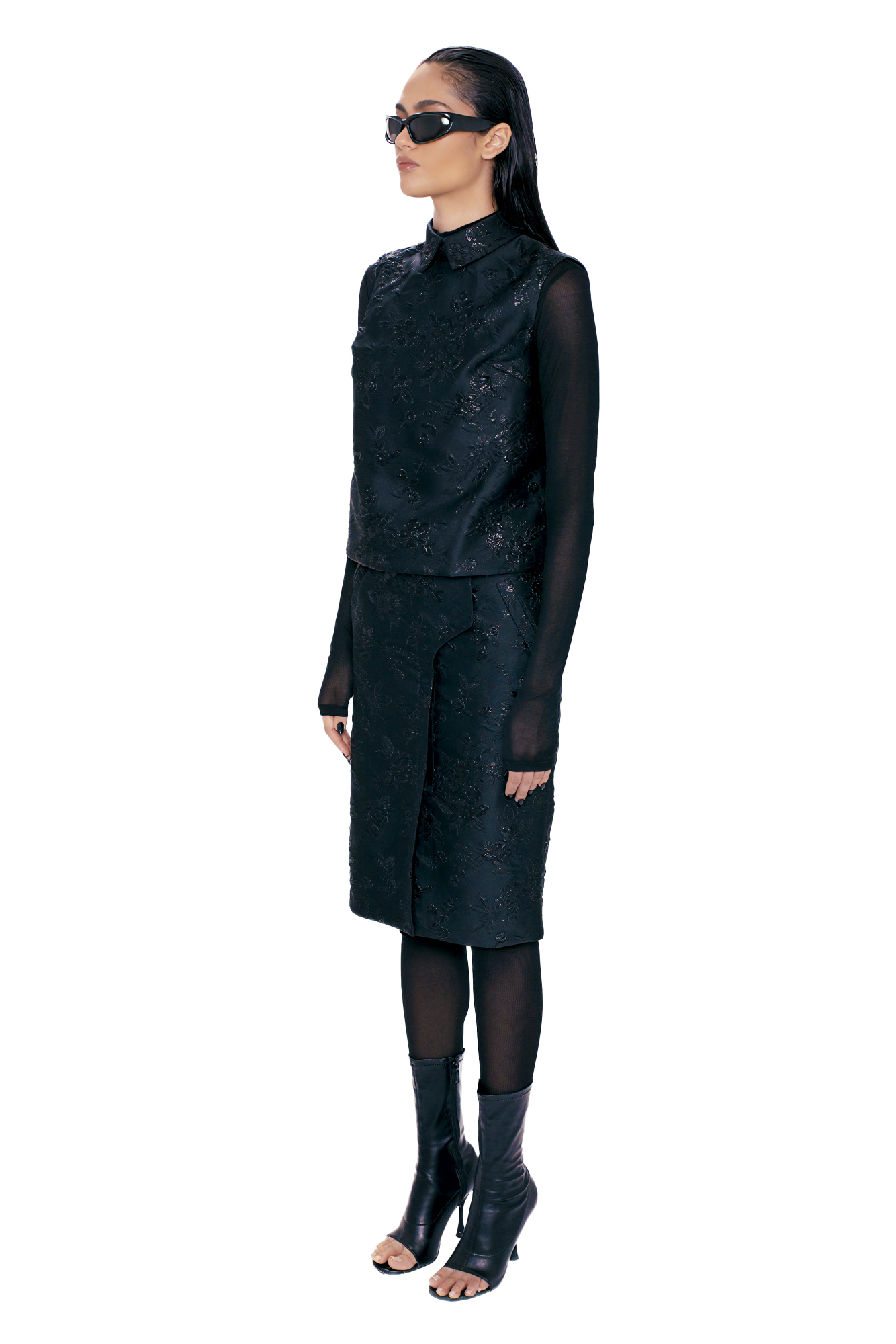 HomeWOMENSKIRTS BLACK SILK BROCDE SKIRT