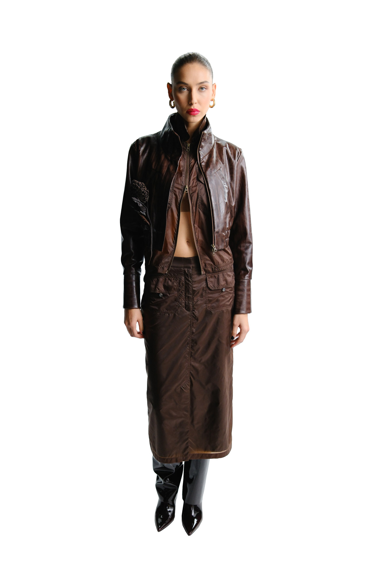 HomeWOMENSKIRTS BROWN NYLON MIDI SKIRT