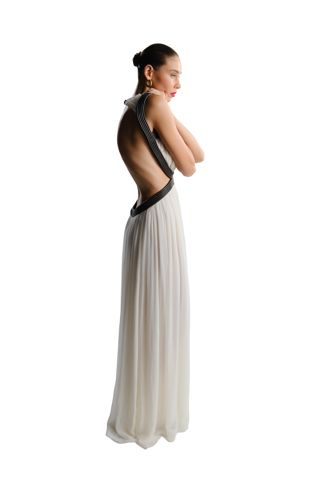 CHIFFON & LEATHER OPEN-BACK DRESS