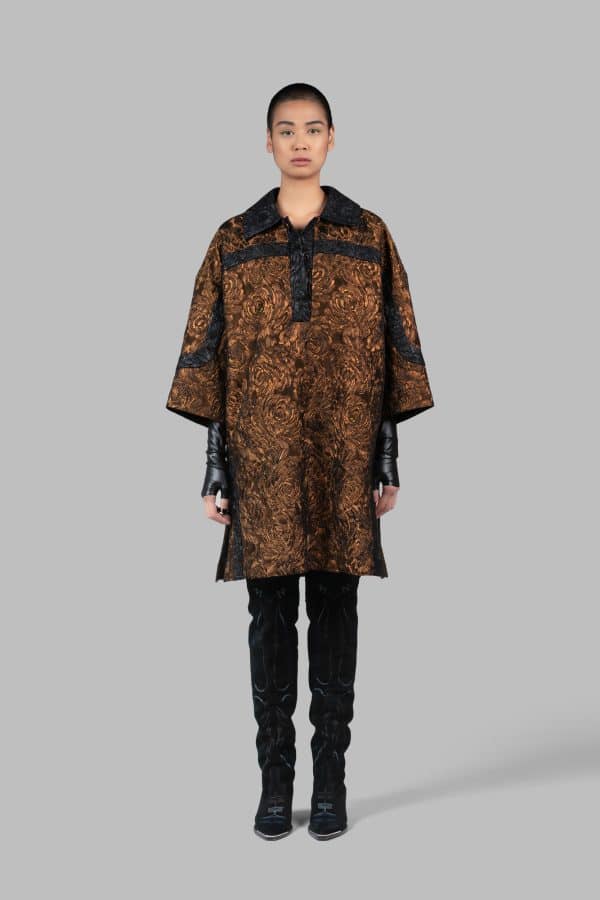 BLUE BROCADE AND LAME REVERSIBLE CAPE