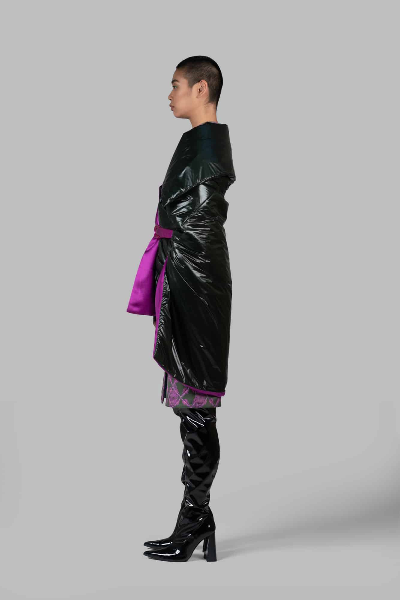 DARK GREEN AND PURPLE REVERSIBLE CAPE $2,440