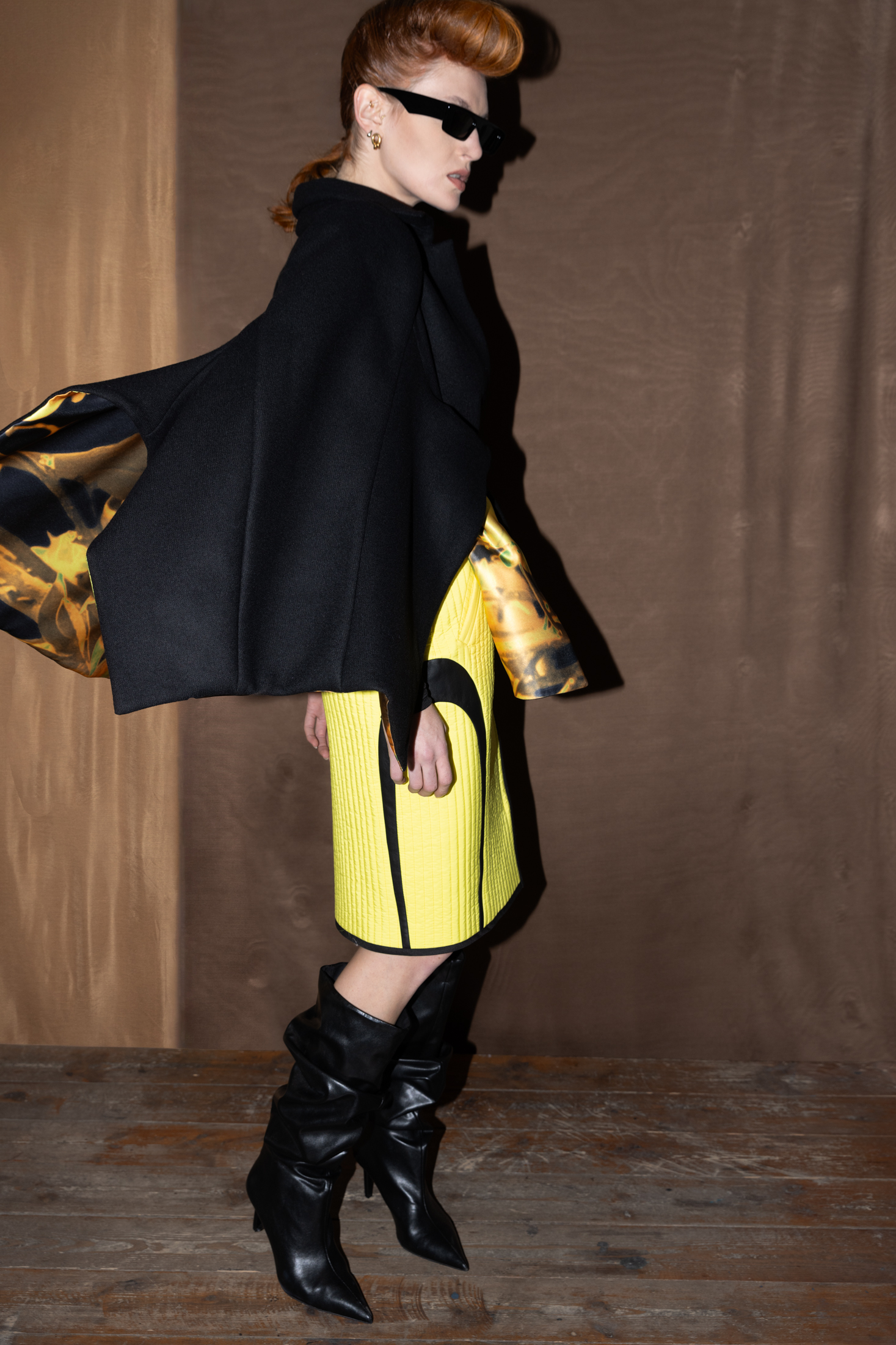 >Yellow fitted skirt