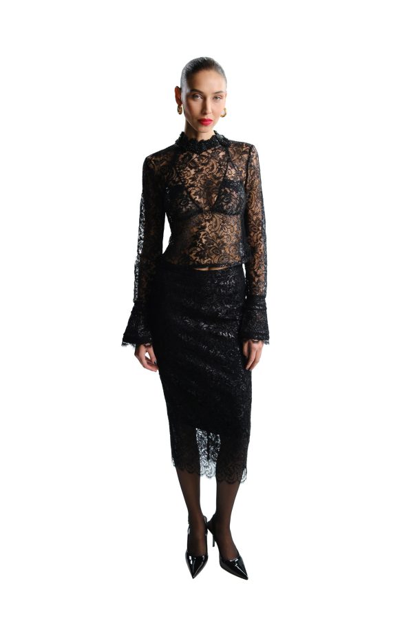 BLACK LACE MIDI SKIRT